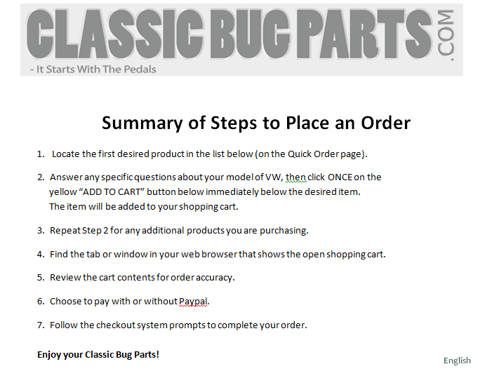 Enjoy the upgraded accelerator and clutch pedal action provided by our precision bug parts. Install these upgrades to eliminate known reliability concerns and then enjoy peace of mind and the enhanced pedal action!
