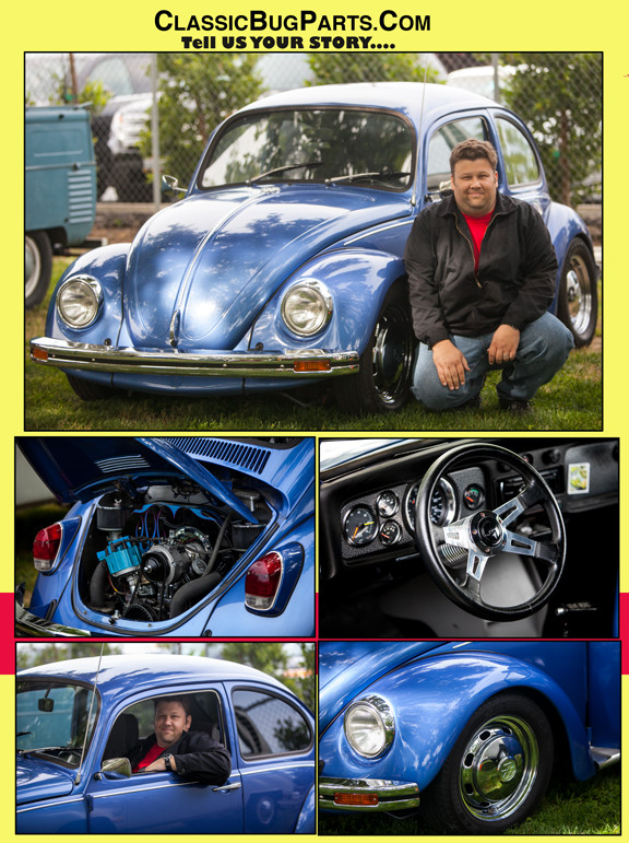 Attending VWcar shows, we met John Vulich and could see his enthusiastic love for his 1970 bug. John has owned this beauty for 23 years, and he has been driving it since he got his drivers license in 1994. Originally it was an auto stick car, but that was all changed when Bruce of Eyeball Engineering (now retired), who is looked up to by many VW owners, converted it to a 4 speed in 1999.