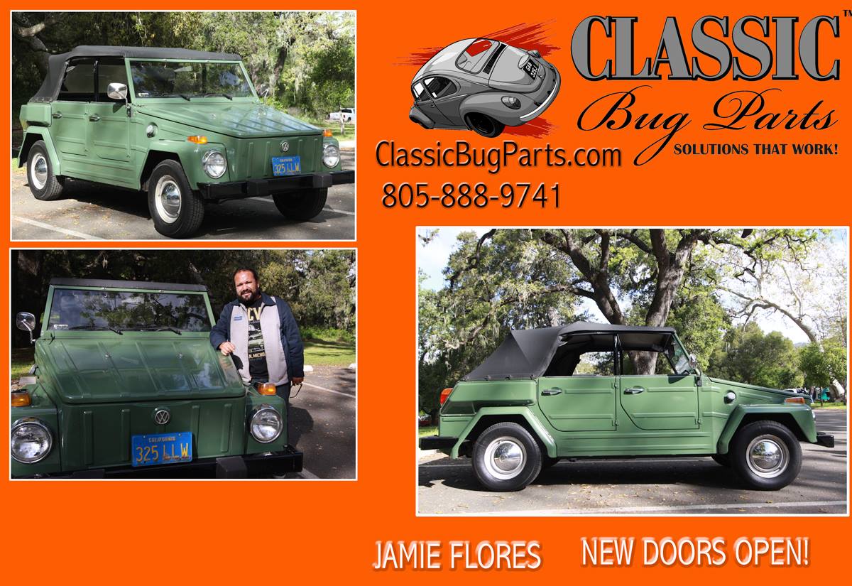 We bumped into Jaime Flores at the “Meet in the Middle” VW event, where he was sporting his new VW Thing. Jamie has Classic Bug Parts products in all his VWs and is planning to install another Clutch Shaft Upgrade in his new ride. Another happy VW enthusiast who loves a smooth drive while making every mile count. Big thanks to Jamie!