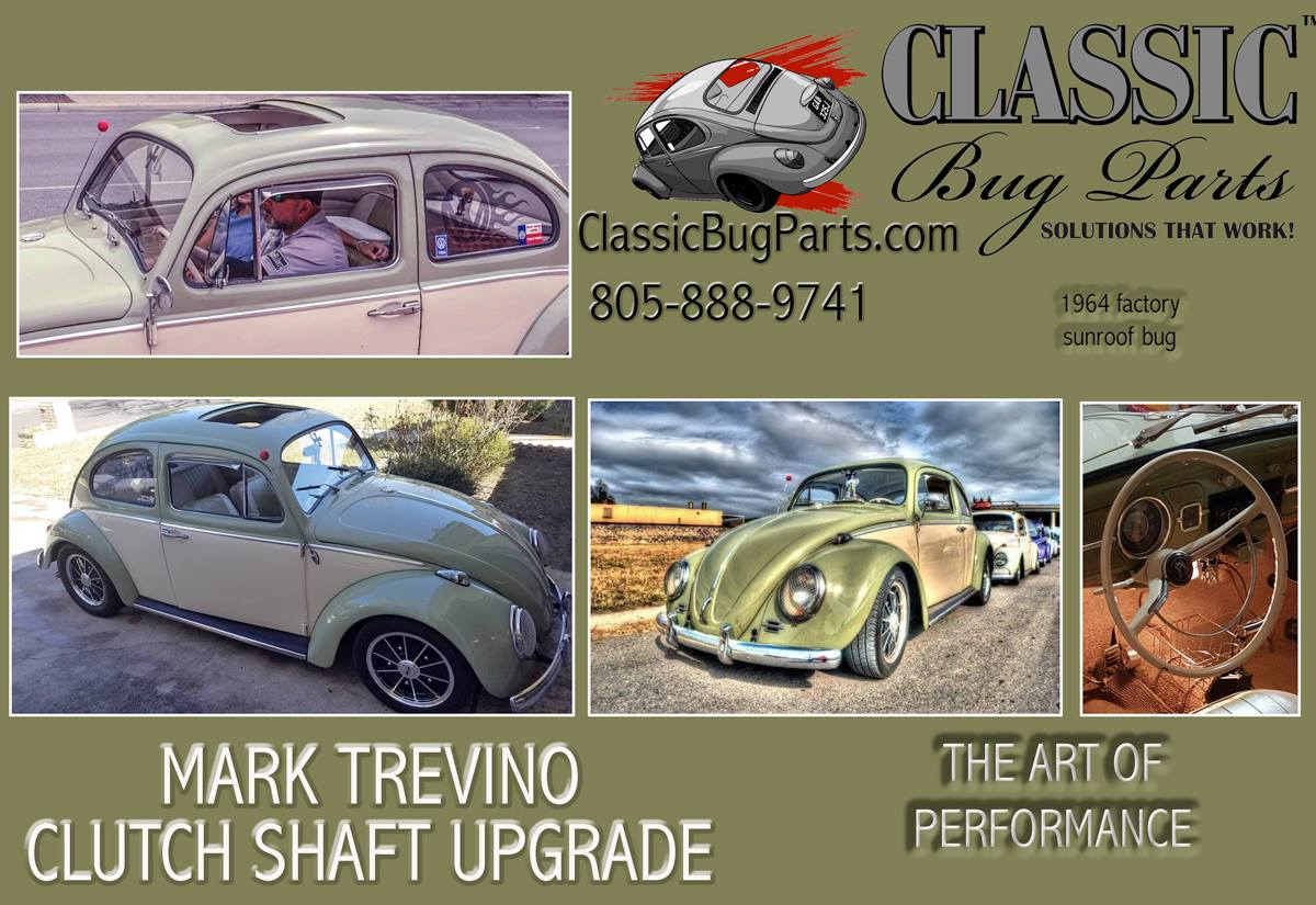 My name is Mark Trevino and this is my 1964 factory sunroof bug. Last year I installed the Classic Bug Parts Clutch Pedal Shaft Upgrade. I know that I will never have to replace the cable, unless the butterfly wing nut in back snaps. I just know that it is one of the best upgrades I have installed in my ride. It has a smooth feel and I have recommended it to my friends.