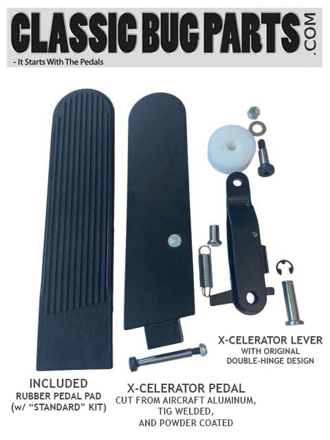 Featuring a vast improvement over the stock lever component, this pedal upgrade provides a new solution to the obsolete single lever design. The old single lever arm gets twisted, warped from the carburetor return spring and from the applied foot pressure at acceleration. As the single lever twists out of alignment, it also bends the guide rail on the flat pedal. Here is the modern permanent fix to solve this problem…